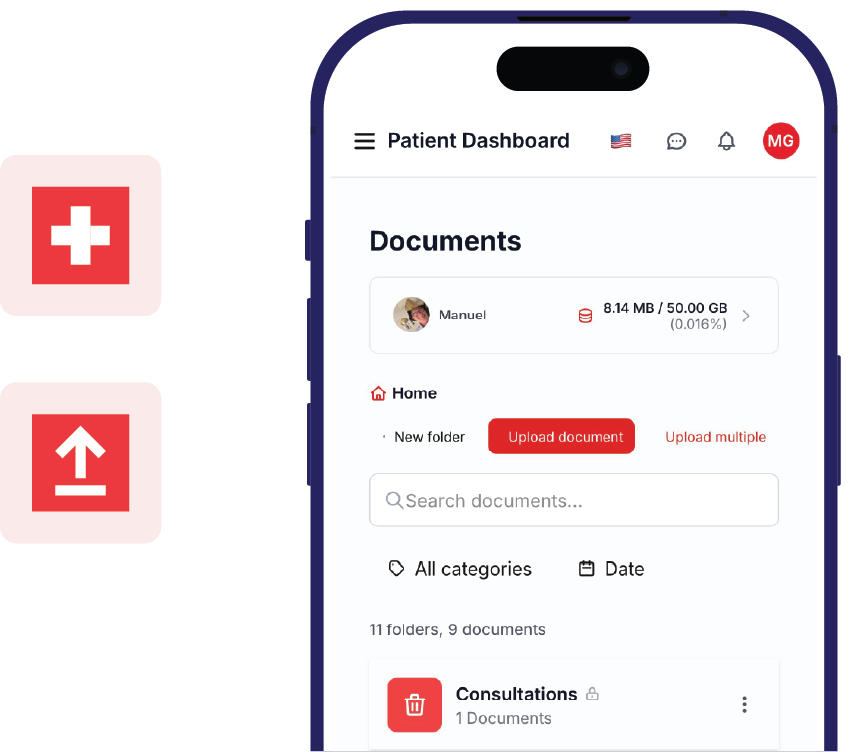 Store exams, prescriptions, reports and medical images.All in one place. Find them fast and share them securelywith doctors or family when you need to.